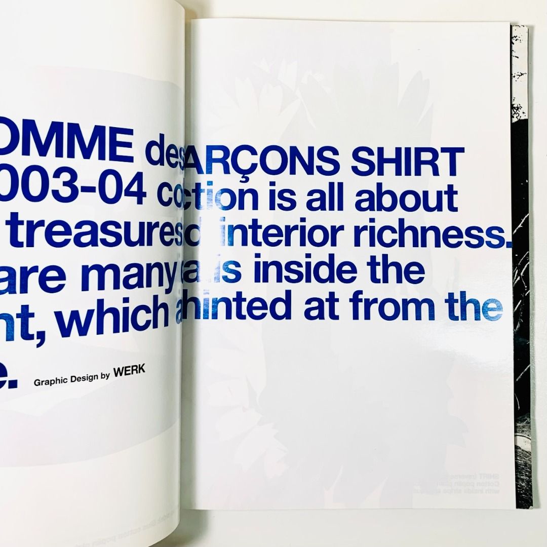 (Singapore): Work, 2003. First edition. Softcover. 30.5cm by 22cm. Unpaginated. Super cool and scarce issue of Werk (autumn / winter 2003/04) issued in collaboration with Comme des Garcons. This iconic issue is an n exploration of the construction, symbolism, and abstraction of the shirt—reimagined through experimental print and material design. The issues features the work of the works of Fiona Cheong, Agathe de Bailliencourt, Cher Him, Church Brothers, Clang, Don Wong, G.T. Gan, Geoff Ang, Johnny Khoo, Kirby Koh, and Yoshiko Seino. A near fine copy in glossy wrappers, each example was hand-assembled, and no two are entirely alike. A landmark in independent publishing and a masterwork of tactile design.