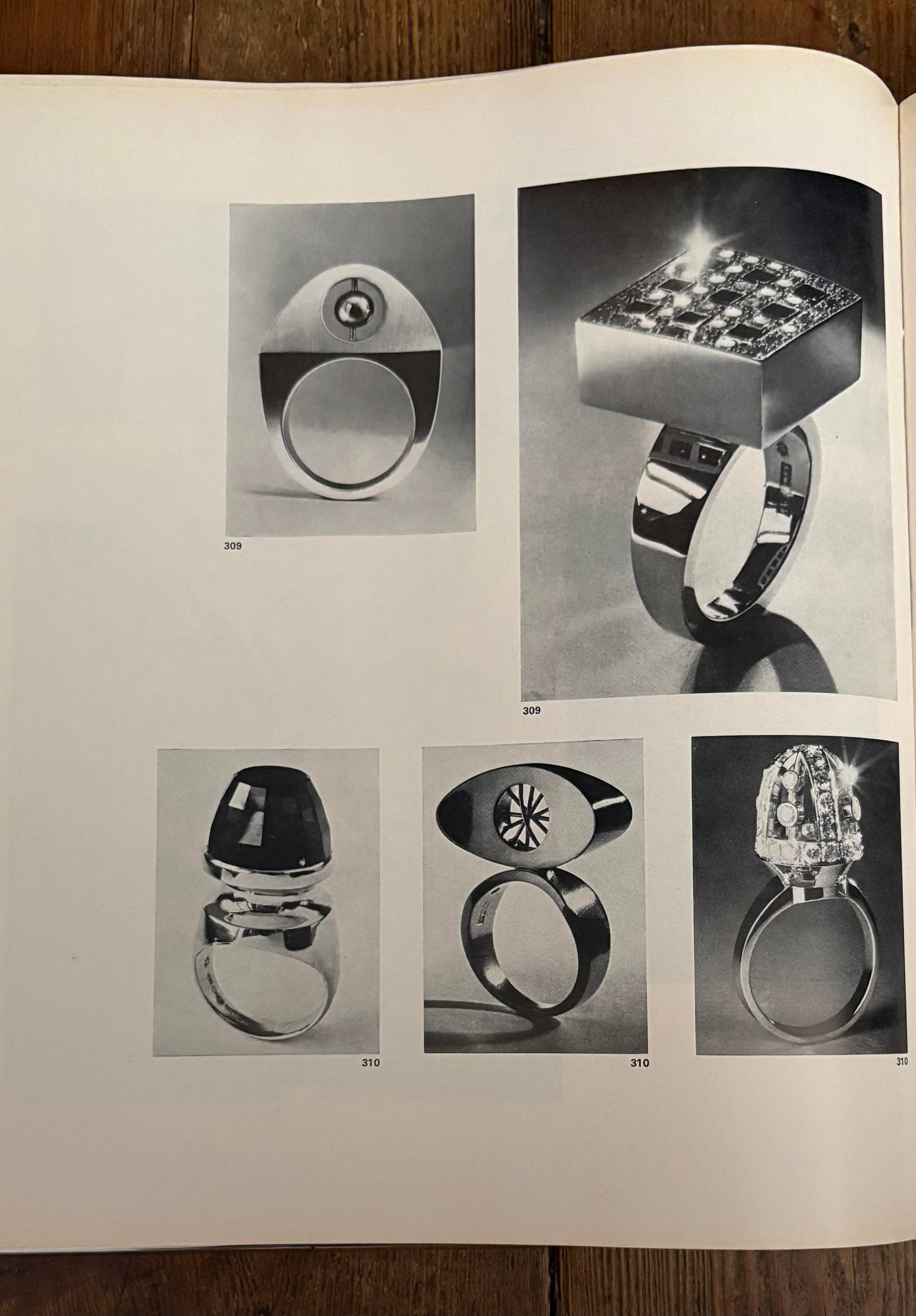 (London): Studio Vista, 1968. Revised edition. Hardback. 28.2cm by 25cm. 256 pages. A landmark monograph offering a comprehensive historical overview of modernist jewellery and craftsmanship from the late 19th to the mid‑20th century. Graham Hughes—former art director of London’s Goldsmiths' Company—curated an international showcase of designers, makers, movements, and techniques. The volume features works by celebrated names such as René Lalique, Georg Jensen, Cartier, Jean Arp, Ettore Sottsass, Andrew Grima, Salvador Dalí, Hans Hansen, and many more. Illustrated throughout with approximately 415 illustrations, including 80 in full colour. A very good copy in dust jacket.